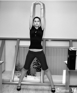 ИП стоя, ноги широко расставлены, руки подняты вверх, пальцы в замок. Фото 14