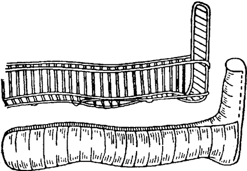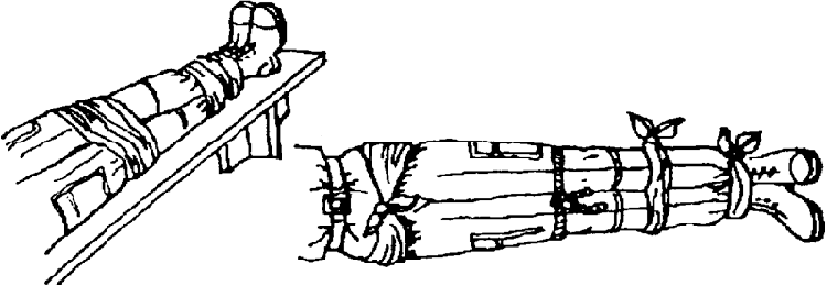 Рис. 4.7. Шина из пучков хвороста при переломе плеча и предплечья
