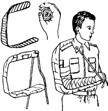 Рис. 4.8. Транспортная иммобилизация верхней конечности лестничной шиной