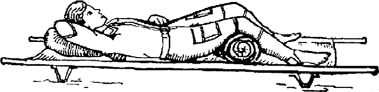 Рис. 4.10. Транспортная иммобилизация при переломах костей таза на носилках