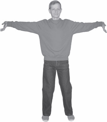 Расправить плечи и развести руки в стороны (параллельно полу). Пальцы направлены вниз.