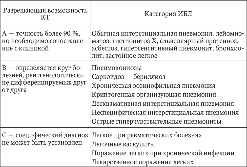 В зависимости от диагностических возможностей КТ все ИБЛ делятся на 3 категории (табл. 19).