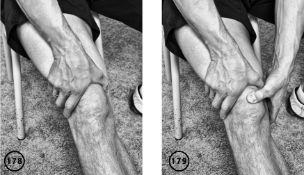 Избыточное количество жидкости в коленном суставе может свидетельствовать о воспалении и ли перенесенной травме. Это состояние обязательно требует консультации специалиста (ил. 178–179).