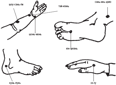 Методика точечного массажа расслабляющая, успокаивающая, седативная. Воздействие проводить за 2–3 часа перед сном или во время непредвиденного просыпания, пробуждения. Методику выполнять не более 10 мин.
