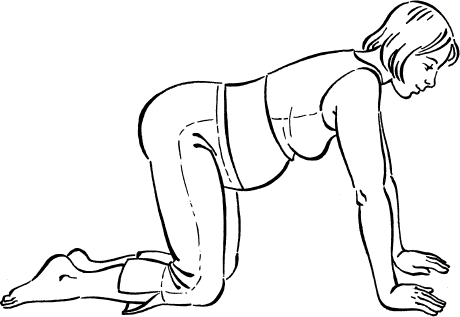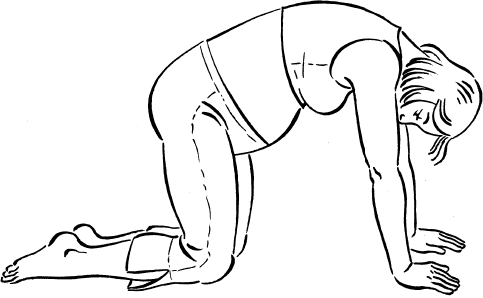 Исходное положение: стоя на коленях с опорой на руки. Постарайтесь расслабить мышцы спины (без чрезмерного изгиба позвоночника). Голову, шею и позвоночник держите на одной линии (рис. 57а).