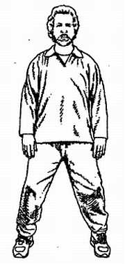 Начните с нейтральной стойки, описанной в предыдущей главе, ноги чуть шире плеч, ступни параллельны. Опытные практики могут, если хотят, поставить ноги еще чуть шире (рис. 14).