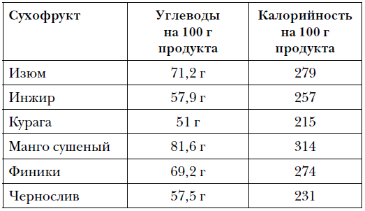 Но также сухофрукты богаты простыми сахарами. Они очень калорийны.