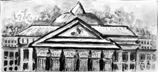 Однако – так и чудилось, что любого человека, вновь прибывающего в академический двор, прежде всего – поражали коринфские пышные колонны, высокий фронтон, да и высокий, как бы нависающий над ним купол.