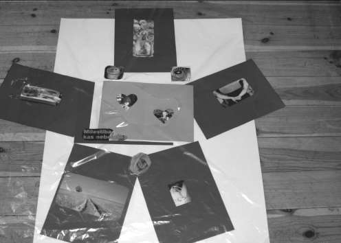 Члены моей группы гуляли по дворику больницы, осматривались. Когда кто-то говорил, что он уже выбрал объект для фотографирования, я давала ему фотоаппарат. На следующем занятии фотографии обсуждались. Сначала высказывался автор: насколько он удовлетворен результатом, получилось ли то, что он ожидал, или нет. Затем высказывались другие члены группы. Я обращала внимание на художественные характеристики фотографий, стараясь не высказывать оценок. Среди снимков было немало выразительных образов, вызывавших у больных яркую эмоциональную реакцию. Например, отрицательные эмоции вызывал стоматологический кабинет или другой член группы (мы затем обсуждали, какие именно качества этого человека послужили тому причиной). Пациент А.С. (22 года) в качестве объекта, вызывающего отрицательные эмоции, сфотографировал помойку. Положительные эмоции у него вызвал черный кот, живущий в отделении. Наиболее интересен его образ эстетического объекта. Он создал своеобразную инсталляцию. Во дворе больницы есть грядки, за которыми ухаживают сами пациенты. На момент нашего занятия одна из грядок была вскопана. Кроме того, на ней лежала бетонная плита с неровными краями, но почти прямоугольной формы, что придавало грядке сходство с могилой. А.С. обратил на это внимание. Он нашел две палки, соединил их наподобие креста и воткнул в грядку. Для завершения образа ему захотелось повесить на «крест» полиэтиленовый пакет, валявшийся рядом, около урны.