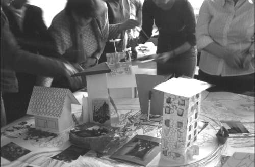 Следующее занятие было посвящено обсуждению получившихся фотографий. На предыдущей сессии каждый член группы был увлечен своей работой и не мог уделить достаточно внимания работам других. А по прошествии времени, немного отстранившись от своей работы и взглянув на нее со стороны, это уже можно было сделать. Кроме того, мы положили рядом все образы, созданные членами группы. Можно было легко сравнить их, найти сходство, а также увидеть своеобразие каждого человека.