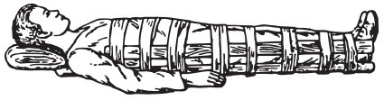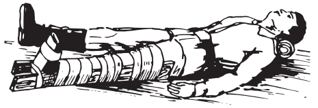 Рис. 5.8. Иммобилизация бедра посредством прибинтовывания травмированной ноги к здоровой (аутоиммобилизация)