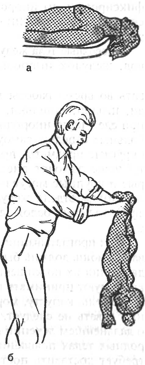 а — положение пострадавшего для активного удаления инородного тела; б — пассивное удаление.