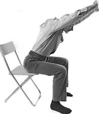 3. На вдохе потянитесь грудью вперед, одновременно вытягивая руки от себя и поднимая их.