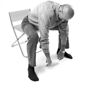 4. Выдыхая плавно, наклонитесь вперед так, чтобы руки свисали между коленями, старайтесь, чтобы голова и позвоночник были на одной прямой.