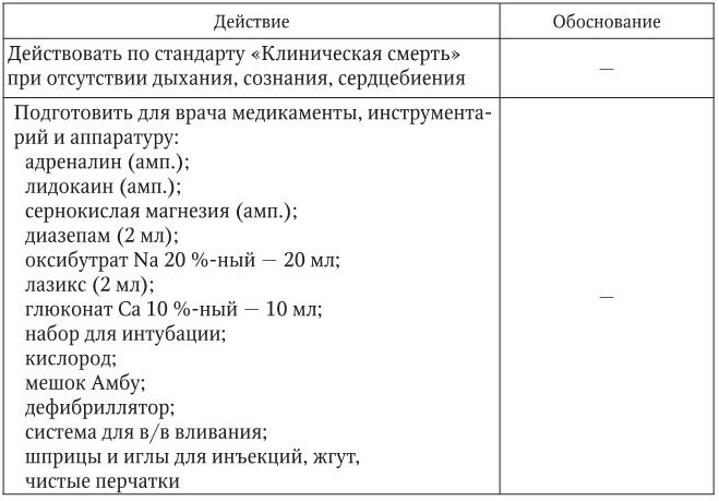 – состояние ухудшилось. Пульс и дыхание отсутствуют, сознания нет – перейти к действиям по стандарту «Клиническая смерть».