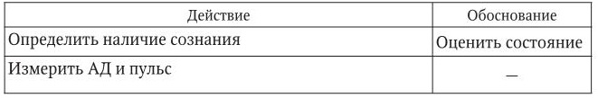 1. Информация, позволяющая медсестре заподозрить неотложное состояние: отсутствие сознания, дыхания и пульсации на сонных артериях. Зрачки расширены. Кожные покровы бледные.