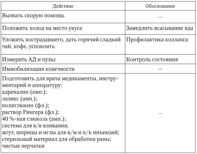 Примечание. Не следует проводить разрезы, прижигать ранки, отсасывать содержимое, обкалывать место укуса прокаином и эпинефрином!