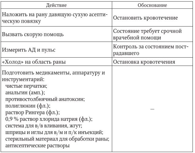 Рекомендуется введение противостолбнячной сыворотки, антирабического иммуноглобулина и направление в травматологический пункт или поликлинику.