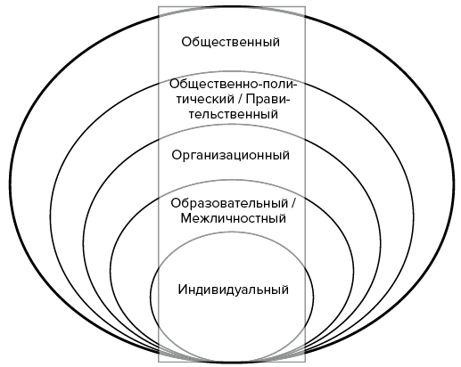 Для меня обращение к этому вопросу состоит из двух логических шагов. Во-первых, мы должны понять, почему проблема недостатка сна со временем лишь усугубляется и проявляет такую устойчивость к переменам. Во-вторых, мы должны разработать структурную модель для внедрения изменений на каждой возможной влиятельной точке, которую можем определить. Здесь не найдется единого чудодейственного решения, ведь существует множество причин хронического недосыпа нашего общества. Ниже я кратко представлю новое видение сна в современном мире — своего рода дорожную карту, которая укажет, каким образом мы можем повлиять на ситуацию на разных уровнях, что схематически представлено на рис. 17.