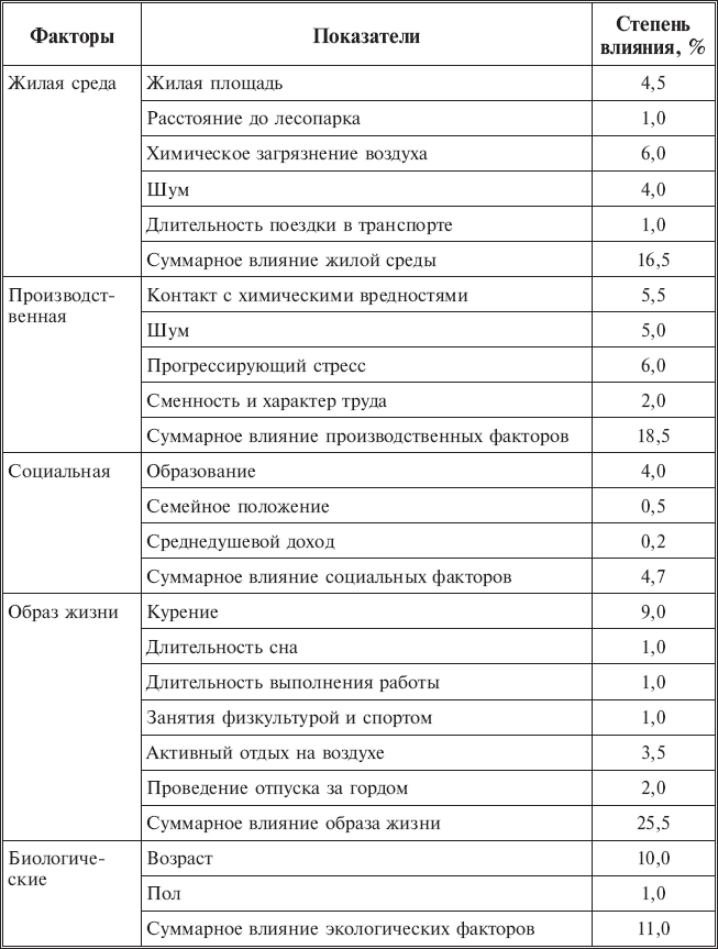 Значительный интерес представляет оценка влияния факторов жилой среды на здоровье человека, приведенные в табл. 10.