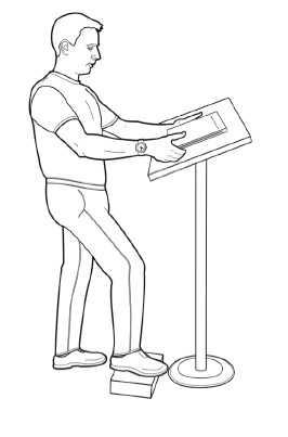 Чтобы снизить вредное воздействие силы тяжести на поясничные позвонки в положении стоя, можно опереться сначала одной ногой, потом другой о поверхность, высота которой выше уровня пола. Таким образом снижается напряжение мышц-сгибателей бедра, обусловленное смещением таза вперед.