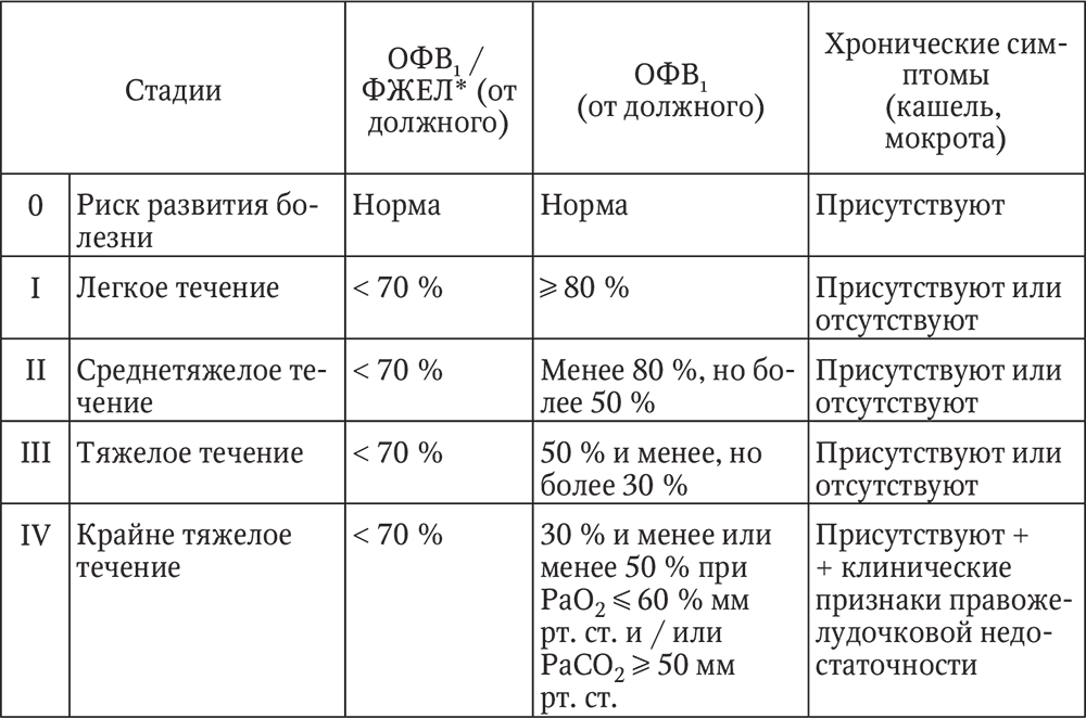 В табл. 5 представлена классификация ХОБЛ (GOLD, 2003).