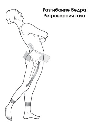 Сочетание разгибания бедра с ретроверсией таза довольно затруднено из-за натяжения мышц-сгибателей (в частности, подвздошно-поясничной и передней прямой четырехглавой мышцы). Они блокируют перемещение таза кзади, увеличивая прогиб поясницы.