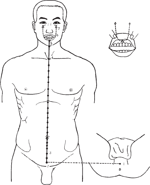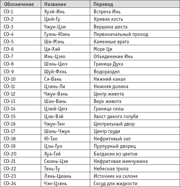 Второй путь тоже начинается в тазовой полости, входит в позвоночник и поднимается внутри тела по спине. Меридиан Зачатия пересекает Управляющий меридиан в точке GV-28.