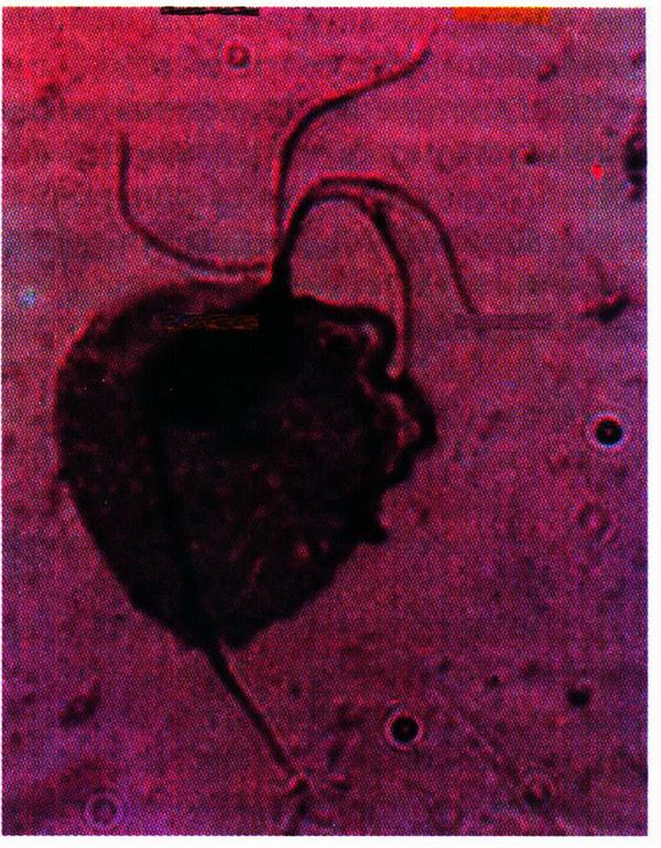 Возбудителем трихомониаза является влагалищная трихомонада (Trichomonas vaginalis) – простейший микроорганизм овальной формы; имеет от 3 до 5 жгутиков и ундулирующую мембрану, с помощью которых движется (рис. 12.6). Питание осуществляется путем эндоосмоса и фагоцитоза. Трихомонада неустойчива во внешней среде и легко погибает при нагревании выше 40°С, высушивании, воздействии дезинфицирующих растворов. Трихомонады часто бывают спутниками других инфекций, передаваемых половым путем (гонорея, хламидиоз, вирусные инфекции и др.) и (или) вызывающих воспаление половых органов (дрожжевые грибы, микоплазмы, уреаплазмы). Трихомониаз рассматривается как смешанная протозойно–бактериальная инфекция.