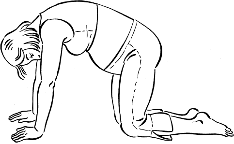 Исходное положение: стоя на коленях с опорой на руки. Постарайтесь расслабить мышцы спины (без чрезмерного изгиба позвоночника). Голову, шею и позвоночник держите на одной линии (рис. 58а).