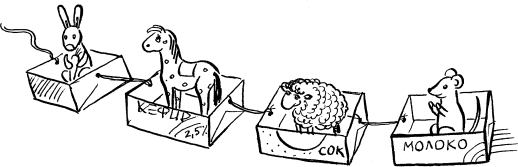 Возьмите одинаковые по размеру, но разные по цвету пакеты из-под молока и сока. Спрячьте в них две-три игрушки и попросите найти определенную игрушку, например коровку, киску или собачку, используя полные и сокращенные слова.