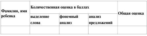 Оценка в 7 баллов соответствует высокому уровню развития практического осознания элементов речи, 3–4 балла — среднему и меньше 3 баллов — низкому уровню осознания языковых элементов.