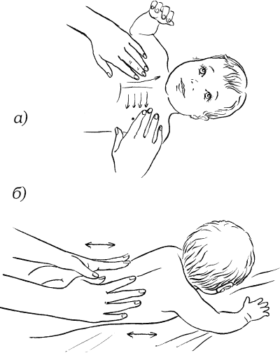 Любой массаж всегда начинают именно с этих движений. Их делают ладонями, перемещая параллельно по коже. Именно эти движения лучше всего успокаивают детей, и именно ими должен заканчиваться каждый сеанс массажа – не забывайте об этом!
