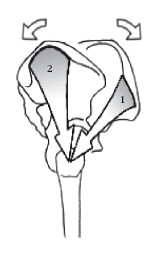 • Ретроверсия таза (2) (двустороннее сокращение задних пучков).