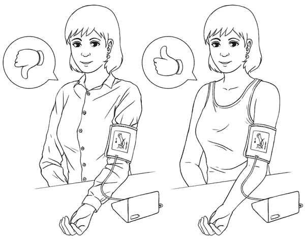 ? Не измеряйте артериальное давление, наложив манжету на рукав одежды. Перед измерением артериального давления нужно оголить руку – снять рубашку. Закатывание рукавов приводит к пережатию сосудов и, соответственно, к погрешностям в измерении. В крайнем случае манжета может быть надета поверх тонкой одежды.