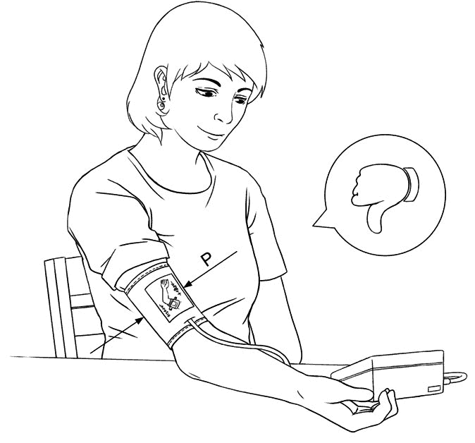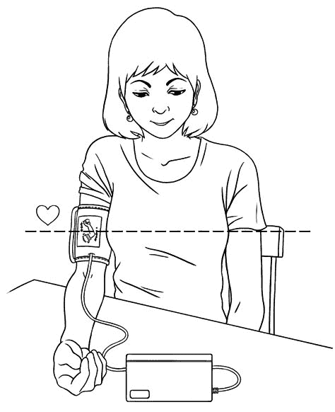 ? Если вы измеряете давление в положении сидя, положите руку на стол ладонью вверх так, чтобы манжета находилась на уровне сердца.