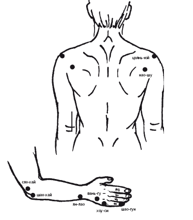 СЯО-ХАЙ – в локтевой борозде, между внутренним мыщелком плечевой и ростком локтевой костей.