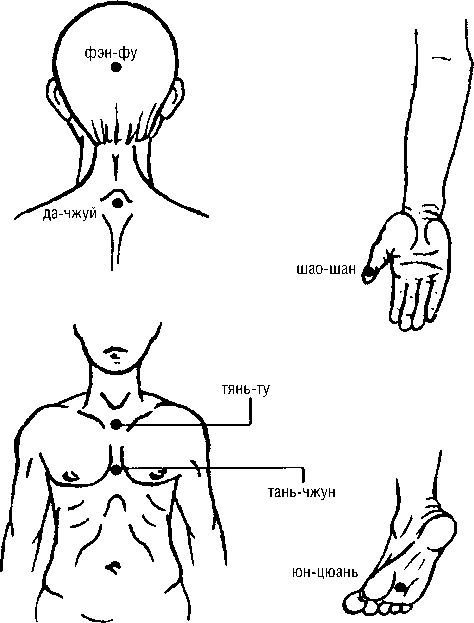 Методика точечного массажа седативная, тормозная, успокаивающая (рис. 93):