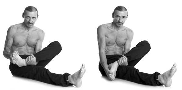 3. Возьметесь правой рукой за стопу левой ноги, а левой рукой обхватите щиколотку.