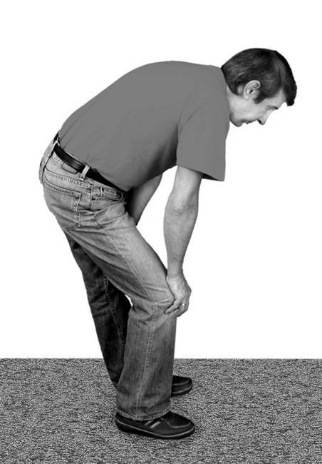 Можно также положить кисти рук на колени и выполнить упражнение, упираясь ладонями в колени. Такое положение называется позой высокого старта. Многим пациентам гораздо легче делать данное упражнение именно в этом положении.