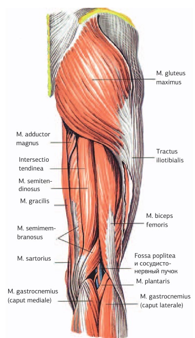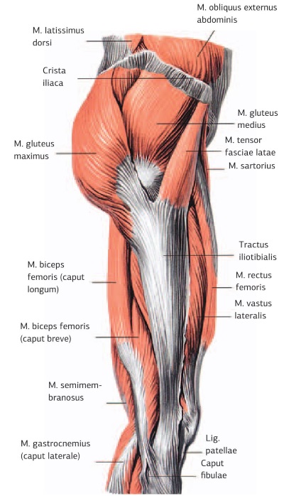 2. Стимуляционный тейпинг задней (наружной) группы мышц тазового пояса (рис. 30, а-г). (Большая, средняя и малая ягодичные мышцы: mm. gluteus maximus, medius, minimus соответственно.) Малая ягодичная мышца находится под средней.