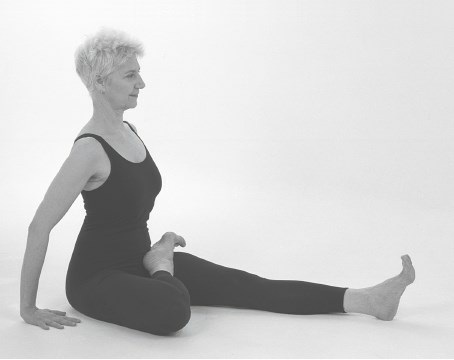 Чтобы выйти из этой позы, ослабьте давление пальцев рук и, по-прежнему сидя, верните туловище в вертикальное положение. Расслабьте правую ногу и снимите ее с левого бедра. И вы опять окажетесь в позе Дандасана. Теперь повторите упражнение с другой ногой.