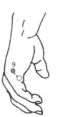 Зона 9 расположена на конце поперечной складки ладони, которая похожа на ручей, текущий с вершины горы (рис. 55, г). Если кисть сжать в кулак, точку можно найти в углублении кзади от локтевого края головки 5-го пястно-фалангового сустава, на конце поперечной складки ладони, на границе тыльной и ладонной поверхности кисти. Эффект от воздействия: улучшение мышечного тонуса; восстановление функции слизистых оболочек пищевого тракта; снижение отечности носоглотки; уменьшение проявления вегетососудистой дистонии (выраженной головной болью, напряжением затылочных мышц, лихорадкой, сердцебиением).