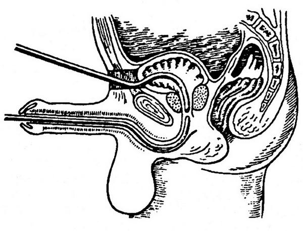 Бужом, вводимым ретроградно, хирург должен все время ощущать конец бужа, введенного в уретру со стороны мочевого пузыря. Когда конец бужа, проведенного в мочевой пузырь ретроградно, становится доступным пальпации и осмотру, к нему фиксируется трубка и буж обратным движением извлекается из уретры наружу, увлекая за собой трубку. Таким образом, по уретре через разрыв проводится трубка, которая позволяет сформироваться рубцу и предотвращает развитие облитерации.
