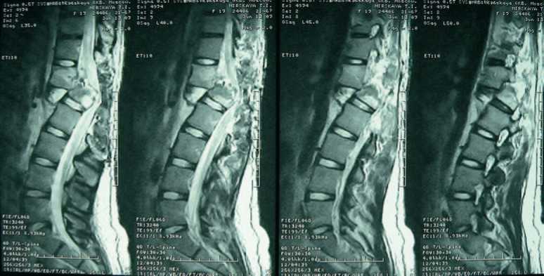 Как видно из КТ-исследования, физический удар и компрессия пришлись на передний отдел спинного мозга, что анатомически соответствует локализации моторных путей. Можно с уверенностью утверждать, что чувствительные пути отчасти попали под компрессию, но анатомически полностью сохранены. Дальнейшая работа с пациентом целиком и полностью основывалась на патофизиологии и морфологии нарушений.