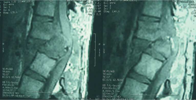 Пациентка М., 25 лет. Диагноз: последствия сочетанной травмы от 10.06.2007. Осложненная спинальная травма. Компрессионный осложненный перелом L1 с полным вывихом ТИ12. Нижняя вялая параплегия с НФТО. Перелом седьмого ребра справа. Пневмоторакс справа.
