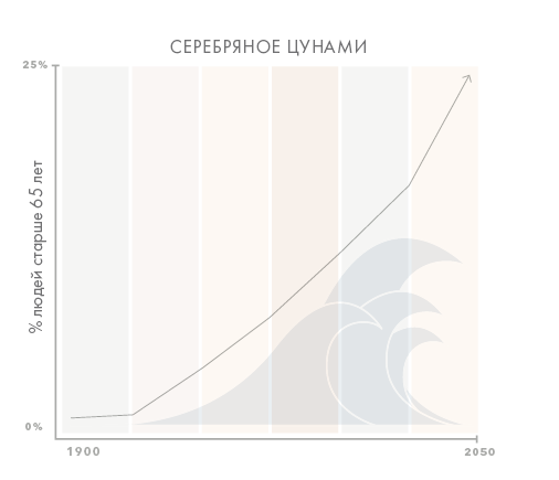 Сегодня на нашей планете – впервые в истории! – людей старше шестидесяти пяти лет больше, чем детей в возрасте до пяти лет. Исследователи называют этот феномен «серебряным цунами».