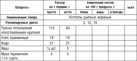 Котлетная масса готовится из рыбного филе без костей, пропущенного через мясорубку с частой решеткой вместе с черствым хлебом, размоченным в воде или молоке. В фарш, приготовленный из нежирной рыбы, можно добавить 5 г сливочного масла на 100 г мякоти. Из полученной массы готовят котлеты, биточки, рулет, фрикадельки, кнели, суфле и др. (табл. 25–30).
