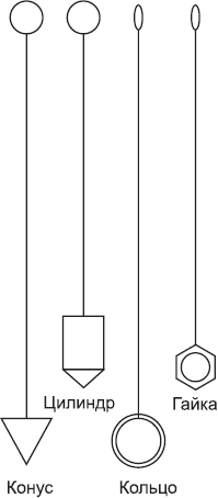 Маятник состоит из металлического груза весом 40–50 г и шелковой нити с петелькой длиной 250–300 мм. Более точная длина нити – длина окружности головы оператора. Материалом груза может быть и золотое кольцо (его вес, естественно меньше 40 г); но следует знать, что этот материал противопоказан Девам, Рыбам, Ракам и Весам. Можно также применять серебро, медь или латунь, а проще – железо. В качестве груза можно применять строительный отвес, а если его нет, то простую гайку.