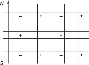 Зная, что другая линия сетки Хартмана перпендикулярна первой, надо с рамками в руках идти по направлению этой линии до момента новой реакции рамок. Как только рамки среагируют, эту точку отмечают и через нее под прямым углом к первой линии выкладывается марками вторая граница геопатогенной зоны. Их пересечение является геопатогенным узлом. Если от этого узла двигаться с рамками в руках поочередно по обеим линиям границ вредной зоны, то с помощью марок удастся выложить на полу небольшой участок сетки, состоящей из параллельных и перпендикулярных линий. Это и будет геопатогенная сетка Хартмана. Ячейки ее, равные 2 ? 2,5 м, будут ограничены геопатогенными узлами. Теперь можно определить полярность этих узлов. Надо подойти к одному из них и мысленно задать вопрос в утвердительной форме: «Этот узел положительный». Если рамки повернутся вовнутрь, то они тем самым положительно ответят на заданный вопрос. Если же они развернутся в противоположные стороны значит, они это отрицают. Итак, установлена полярность одного узла (он положительный). Чтобы установить полярность других узлов, нет никакой необходимости подходить к каждому из них и задавать подобные вопросы. Необходимо запомнить, что следующий узел будет находиться через 2–2,5 м на границе вредной зоны, во все стороны от первого, и они будут отрицательными. И далее, чередование полярности (плюс-минус) будет таким же. После того как сетка Хартмана выявлена и выложена на полу марками с указанием полярности узлов, ее легко можно перенести на составленный план нашей комнаты (квартиры). И сразу же будет видно, в каком месте данный узел попадает на подушку кровати, на диван, кресло или письменный стол и т. д. В зависимости от этого можно передвинуть некоторые предметы мебели, чтобы избавиться от вредного действия этого узла.